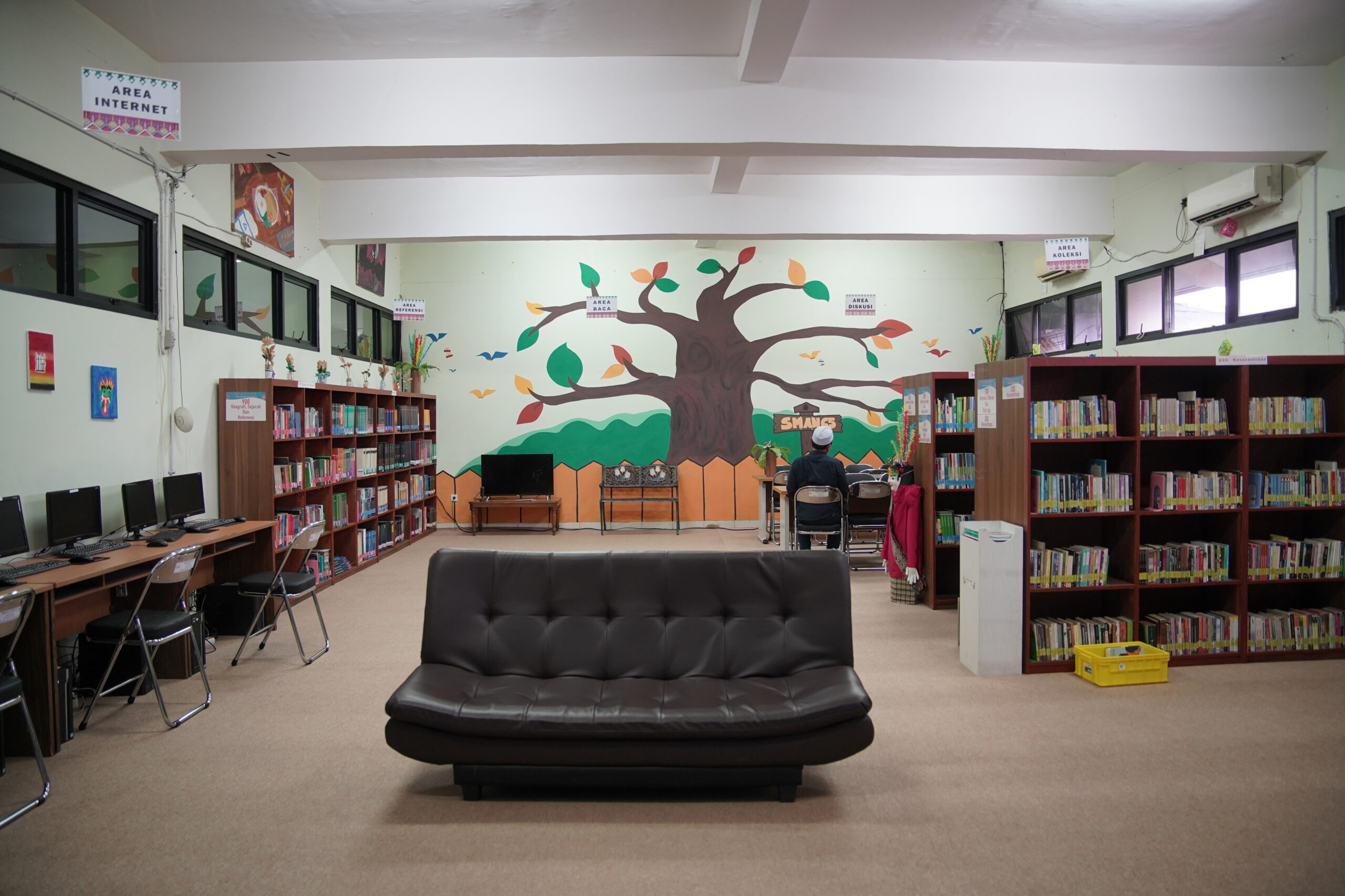 Pusat belajar dengan koleksi buku beragam, dari literatur akademis hingga umum.